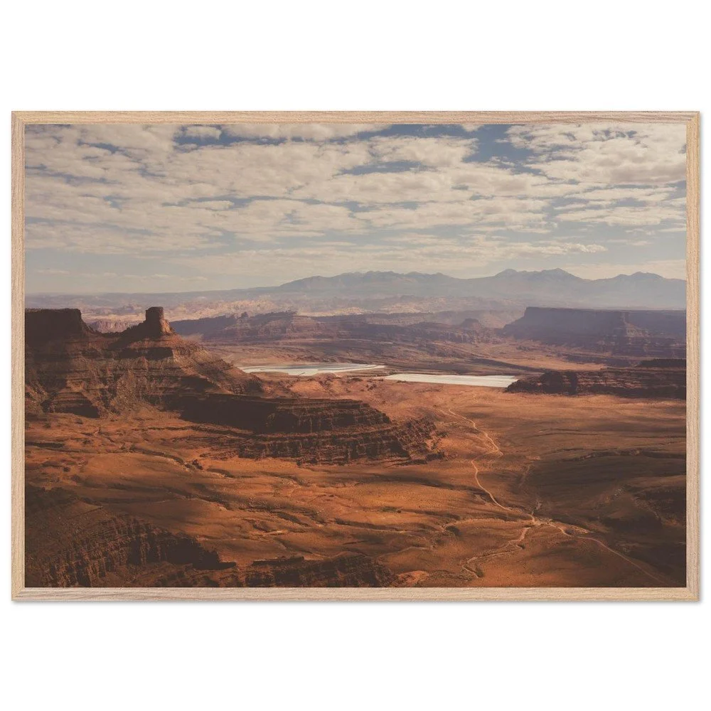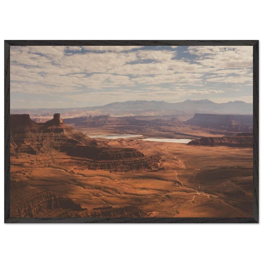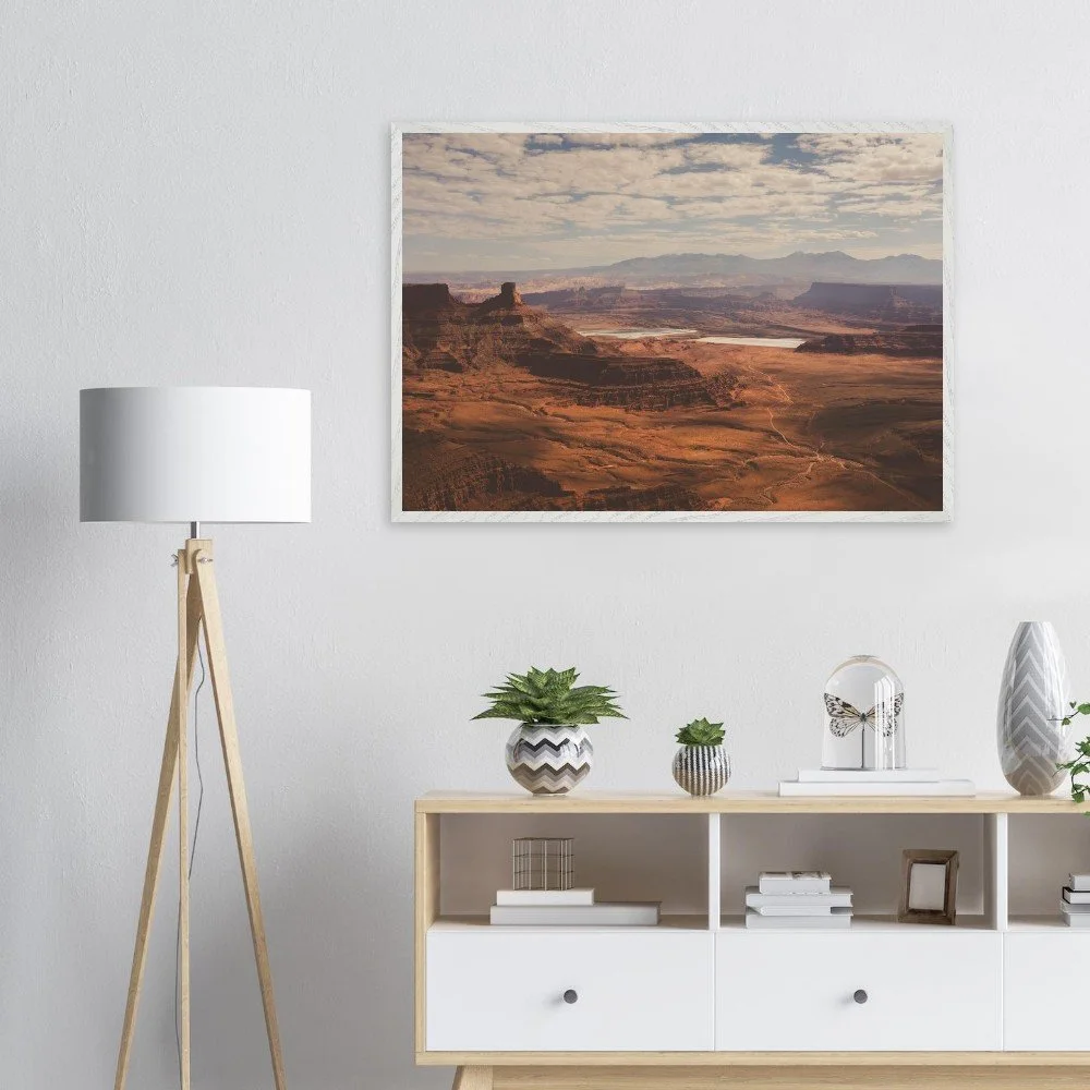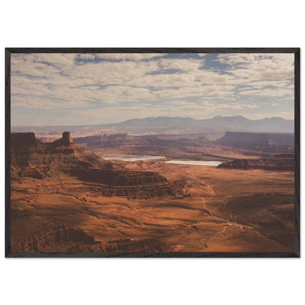 Transform your space with this stunning Mounted Framed Poster of Dead Horse Point in Utah, showcasing a breathtaking view over a canyon filled with rich orange earth tones. This gorgeous landscape features the iconic Potash ponds, capturing the true essence of one of America’s most beautiful national parks.