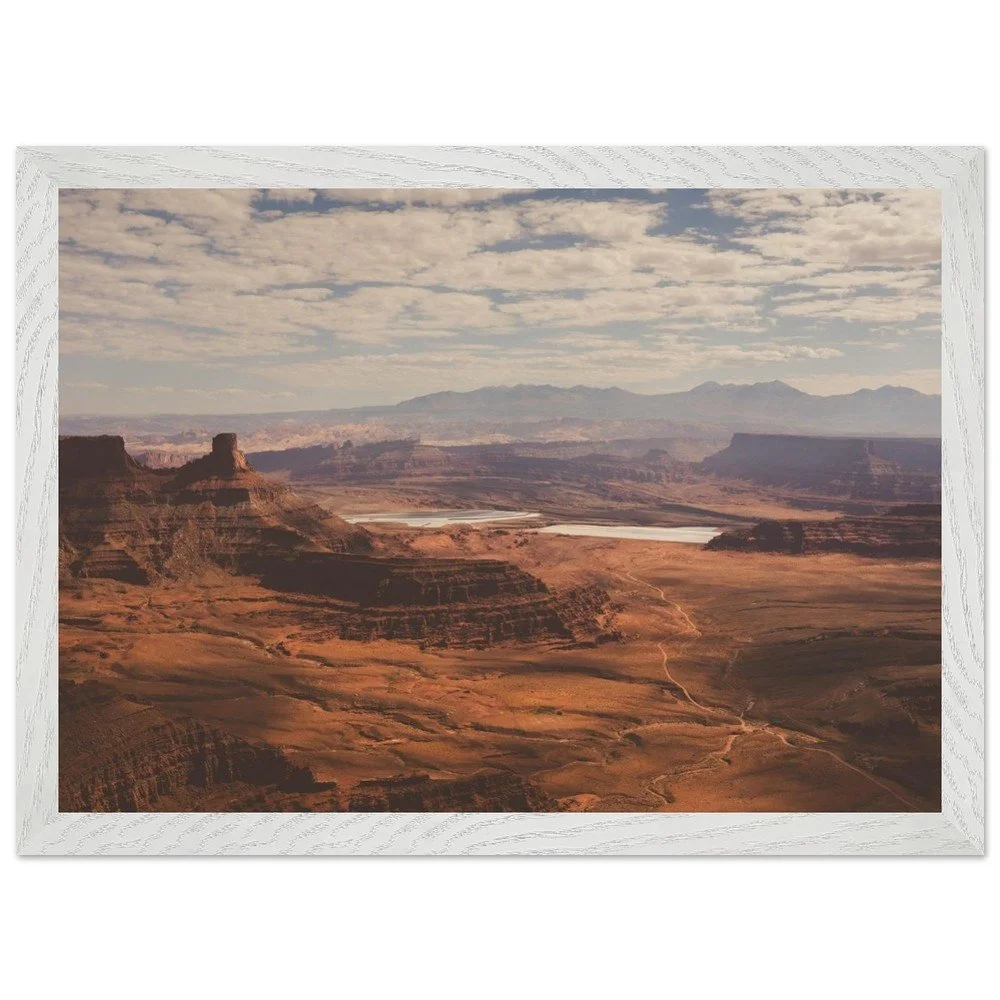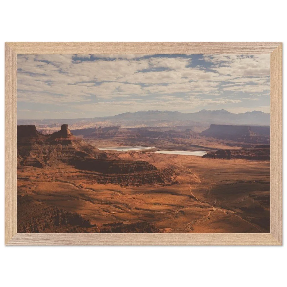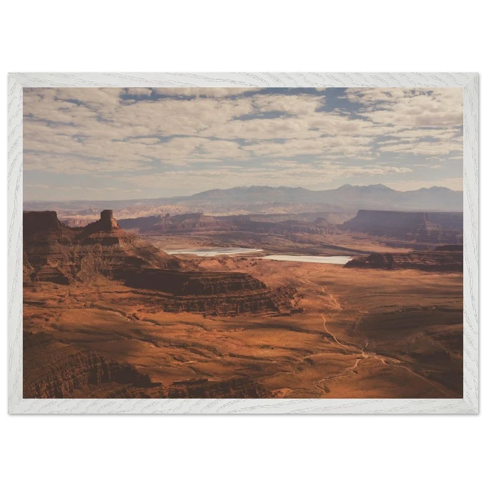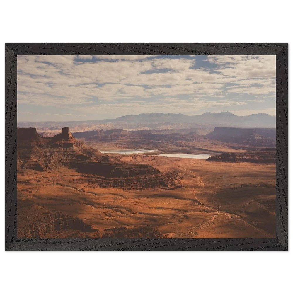 Transform your space with this stunning Mounted Framed Poster of Dead Horse Point in Utah, showcasing a breathtaking view over a canyon filled with rich orange earth tones. This gorgeous landscape features the iconic Potash ponds, capturing the true essence of one of America’s most beautiful national parks.