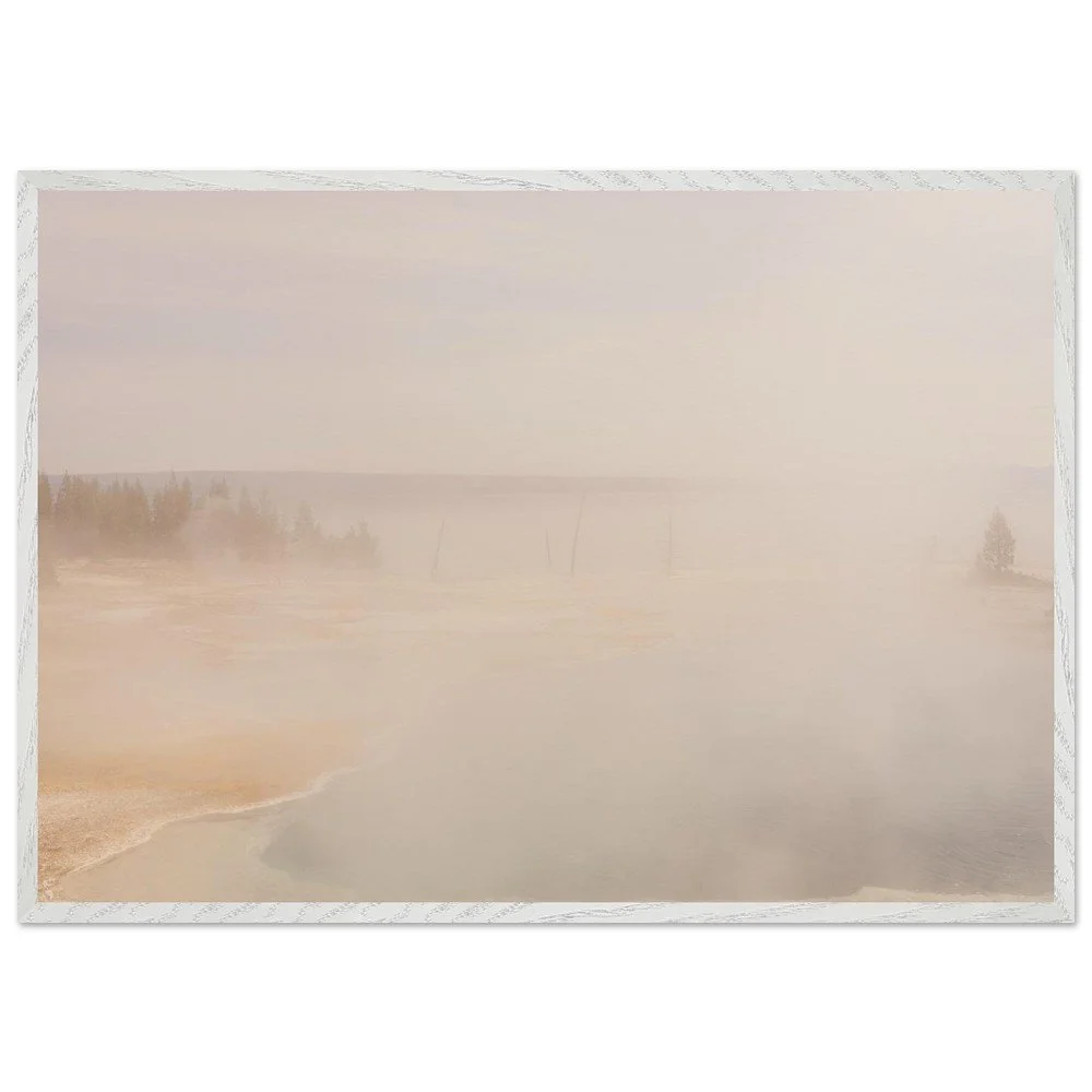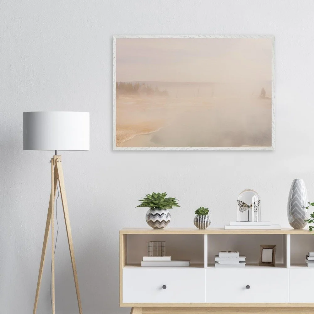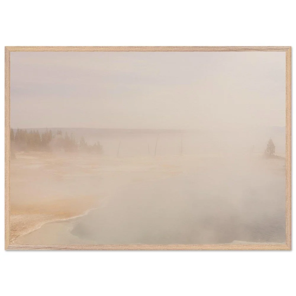 Bring the breathtaking beauty of Yellowstone National Park into your home with this stunning framed poster. Featuring a vibrant hydrothermal hot spring pool with ethereal steam rising from the electric blue pools, this piece captures the raw, natural wonder of a classic USA road trip.